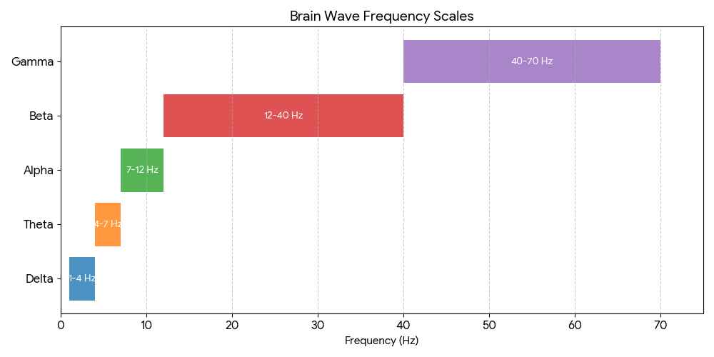 - γ Gamma (40–70 Hz): The fastest waves, associated with “firing on all cylinders.” They relate to high-level information processing, happiness, compassion, and advanced learning.